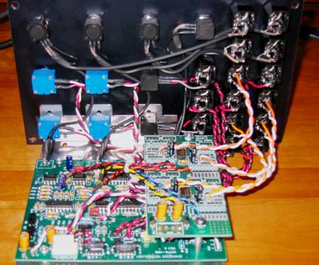 Four output buffer circuits are needed for the four additional outputs. These buffers can be built with one MUUB-4 board from Tellun Corp. Each circuit is a replica of the buffer around U11B, consisting of a 3.3uf non-polar cap, 6.8K and 68K resistors and a 1K resistor for the output.