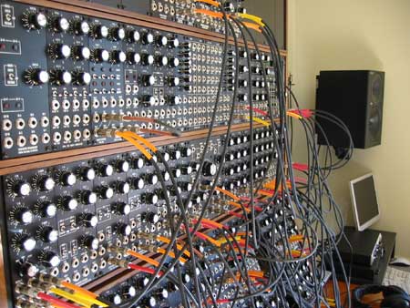 The photo shows the Big Drone patch at one point. Four different voices were mixed in real time during the recording. I touched the keyboard once in the middle of the piece to change the tonic. Major modules: MOTM-510 The Wavewarper, CGS Wave Multiplier, Cynthia Sawtooth Animator, MOTM-440 VCF, MOTM-480 VCF, CGS Synthacon VCF, seven VCO’s. You hear the effects of 18 LFO’s, counting the 8 in the Animator. The Lexicon MPX-1 “Classic Detune” adds richness.