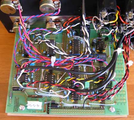 As you see from these photos, the MOTM protoboard is stuffed full. I used IC sockets for all chips.