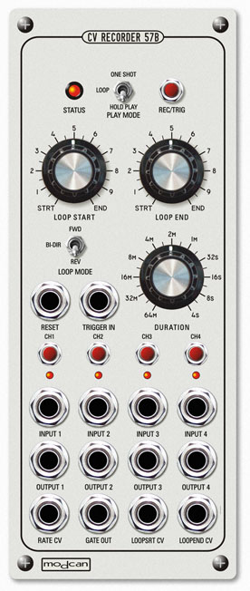Concept: Combine the ability to record and playback control voltage signal events from standard modules with the tools to shape, mix, loop and time scale these performances in a simple and repeatable manner. A brief list of possible uses for the 57B: