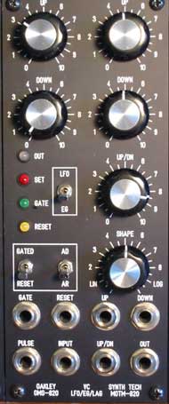 With this module you can make the MOTM-820 into a voltage controlled LFO with variable waveshape. Or you use it to make a powerful voltage controlled envelope generator, with manual set and preset modes. You will be amazed by the uses you can find for this module.
