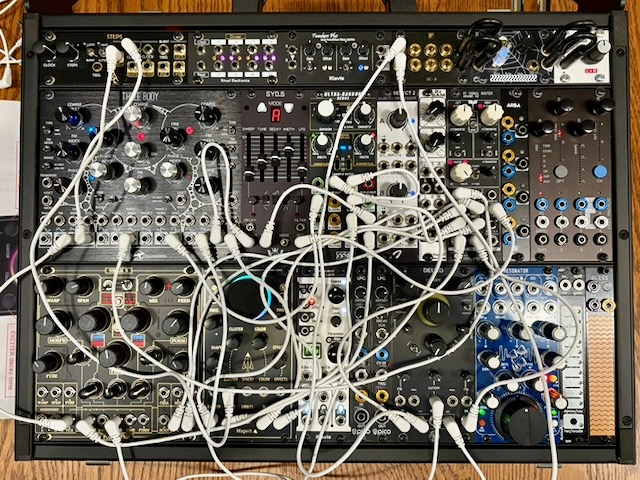 Night Journey By Richard on November 25, 2025 Night Journey patch with the room lights on A simple two voice patch on the Eurorack. Take 1 in higher pitches. Take 2 in lower pitches Share this: Click to share on Facebook (Opens in new window) Facebook Click to share on X (Opens in new window) X