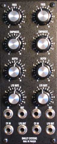 The unit includes a useful internal low frequency oscillator with accompanying bicolour LED. The centre frequency of the phase shifter can also be controlled by an external control voltage, thus allowing envelope generators to be used to sweep the phaser to create filter type effects.